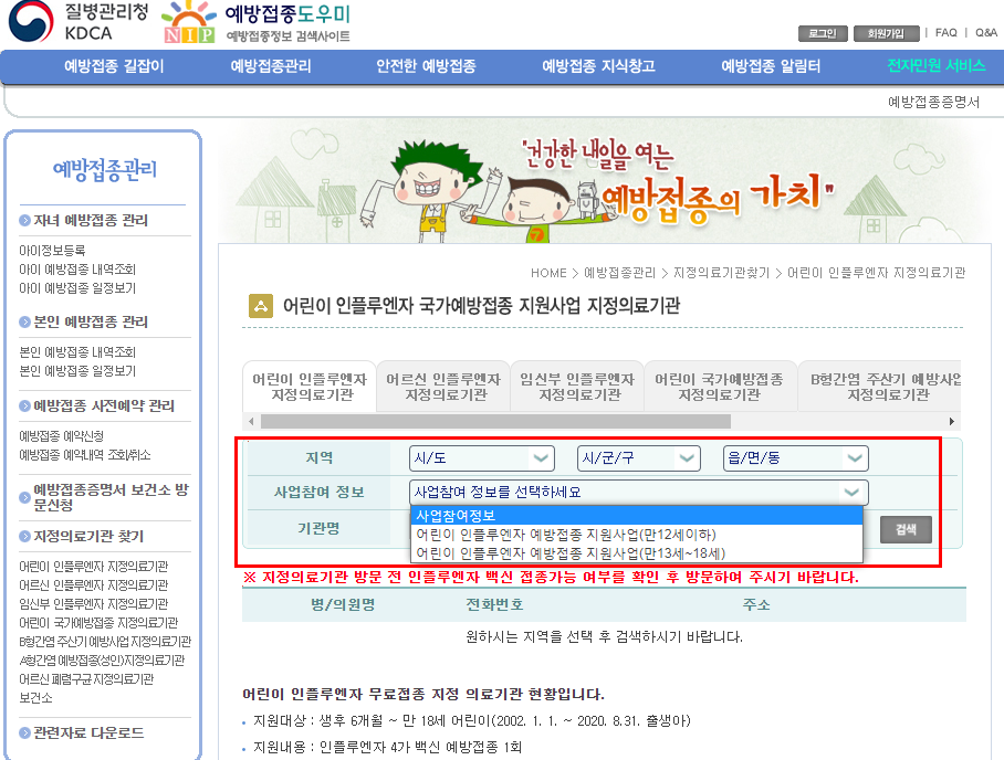 독감 백신 무료 접종 병원 예약 (바로가기 링크)